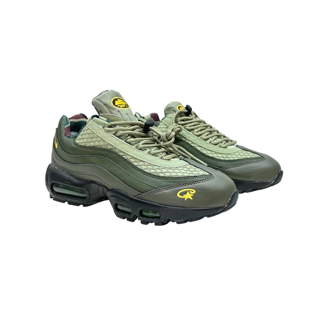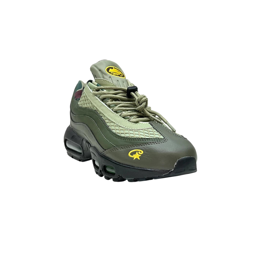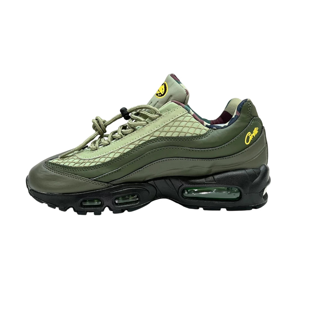 Inspirado nas ruas e na energia urbana, o Air Max 95 Cortez “GUTTA GREEN” traz um visual ousado em tons de verde militar com detalhes em amarelo marcante. Seu design icônico une camadas robustas de couro e mesh respirável, garantindo durabilidade e conforto em qualquer ocasião.