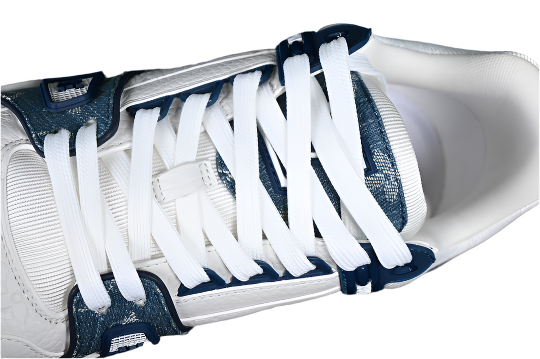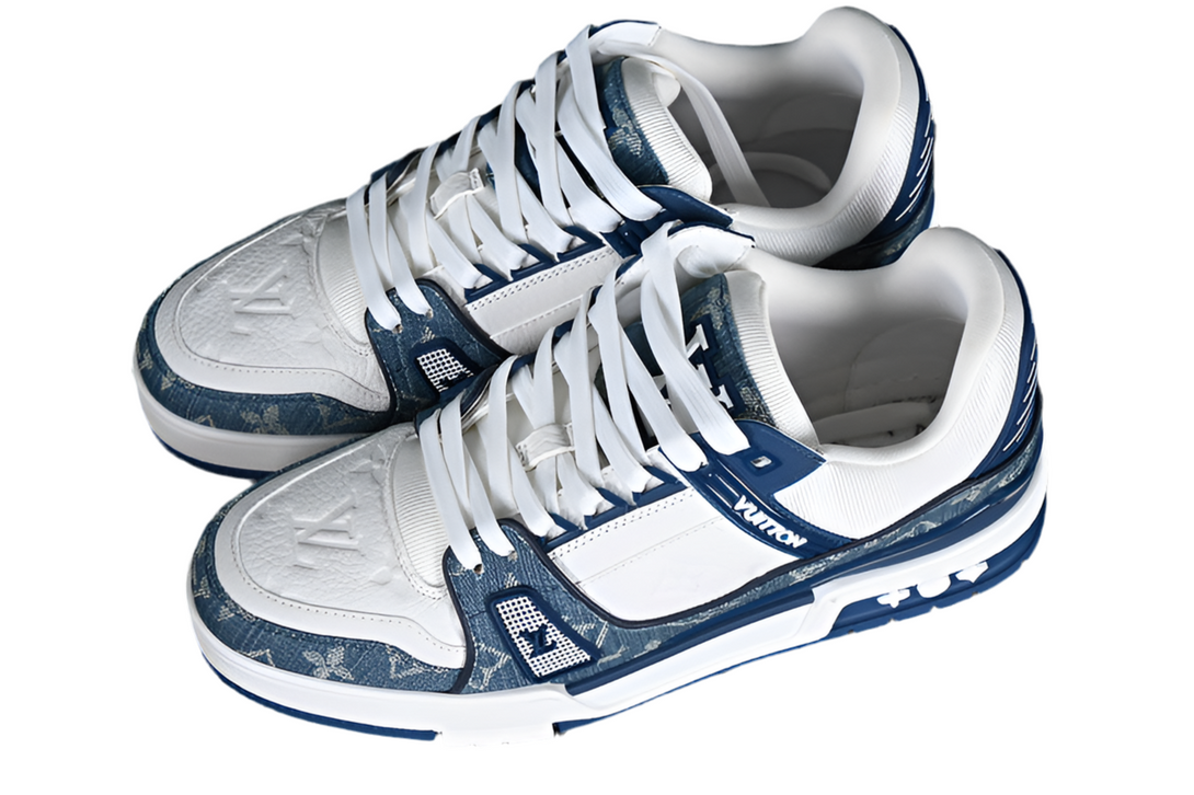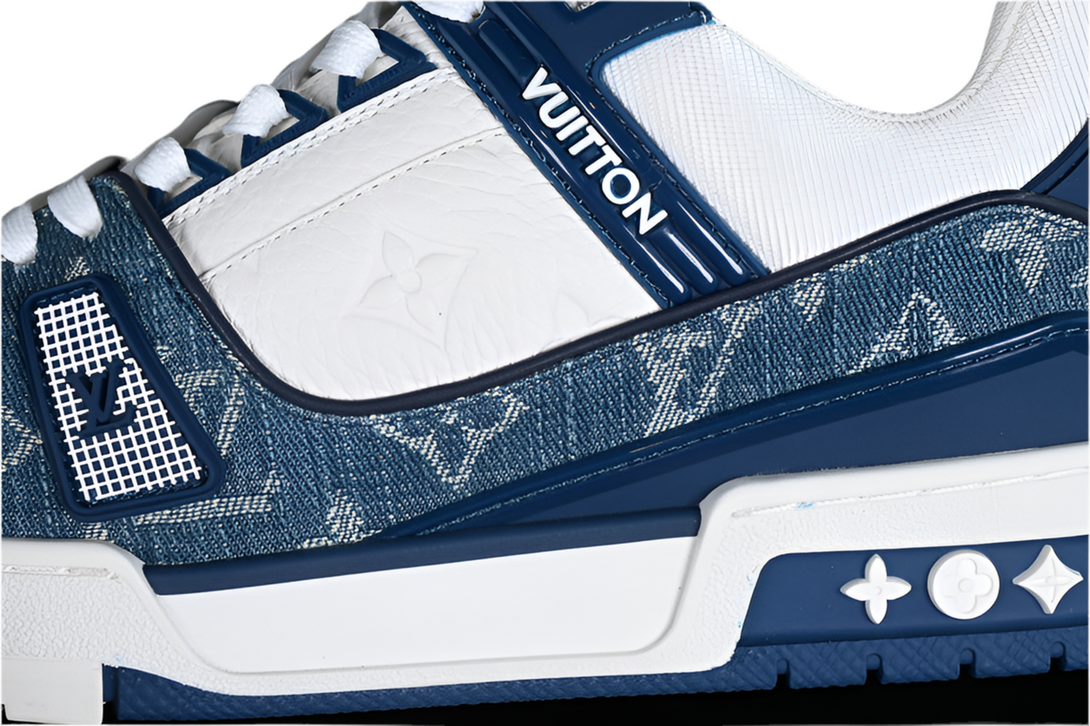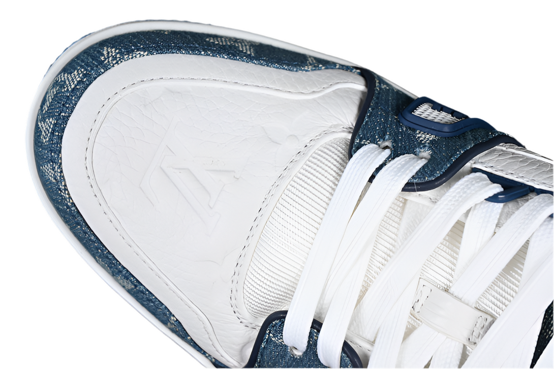 Inspirado nos clássicos do streetwear e na tradição da alta moda, o LV Trainer traz um design icônico com cabedal em denim monogramado azul, combinando texturas e tons que representam sofisticação em cada detalhe.