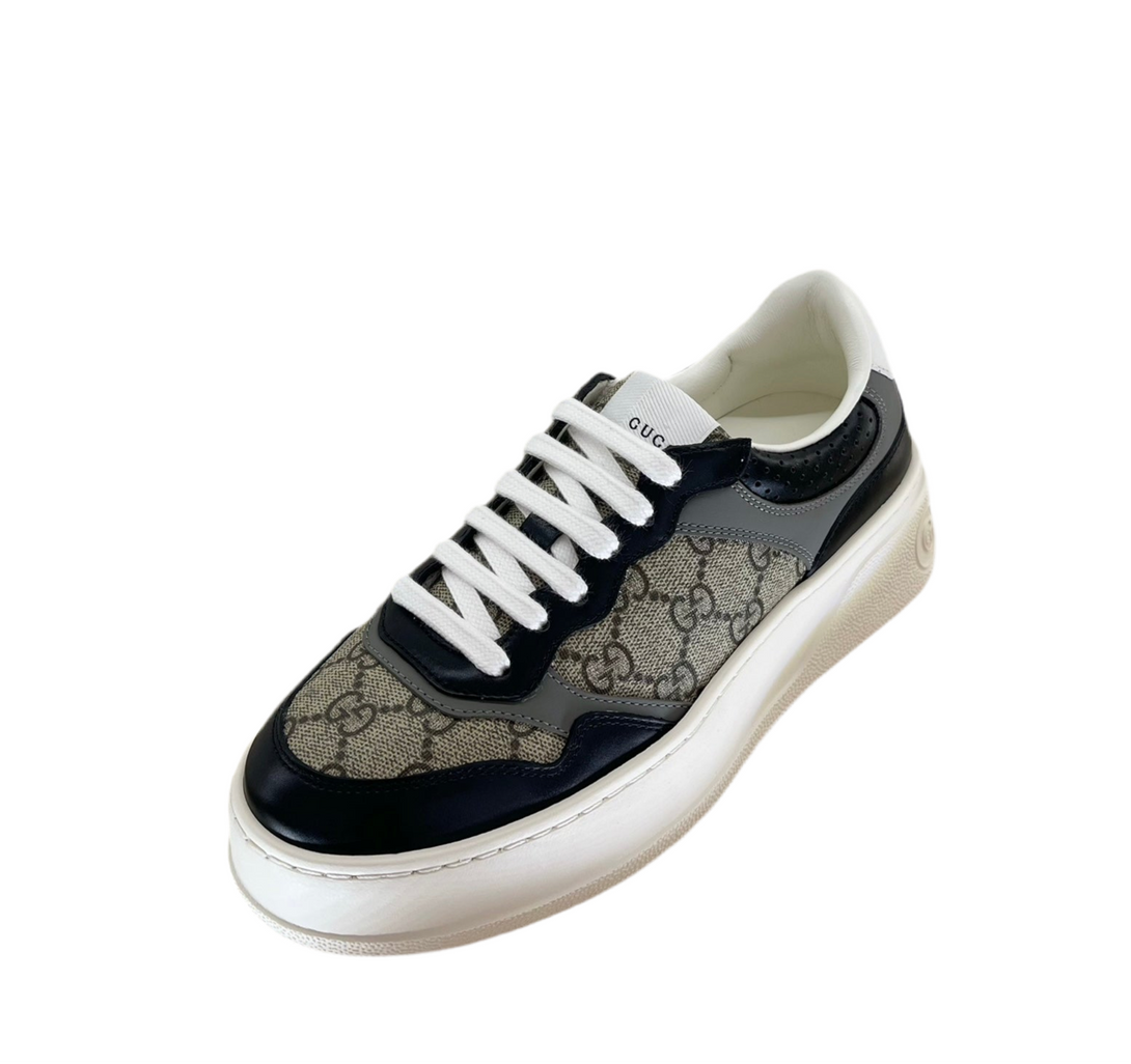 O equilíbrio perfeito entre luxo e atitude urbana. Este tênis casual da Gucci combina o icônico monograma GG canvas com detalhes em couro azul e cinza, criando uma estética moderna, elegante e versátil. A entressola elevada oferece conforto superior e um visual imponente, enquanto o design refinado carrega o DNA inconfundível da grife italiana.